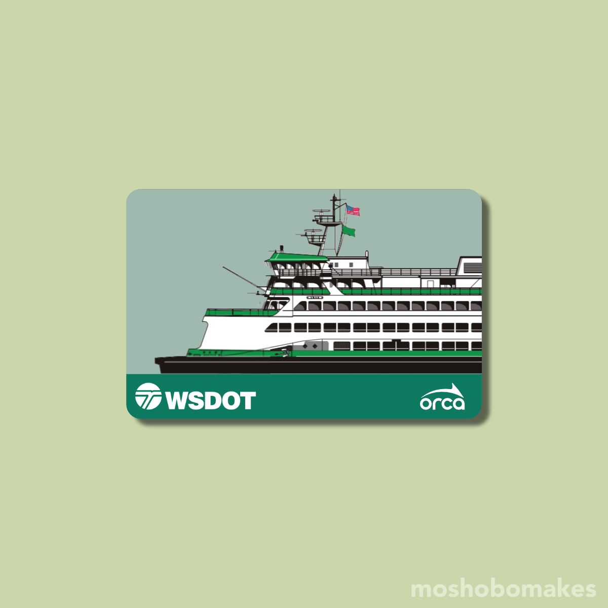 This card’s design is inspired by the iconic ferries that traverse Elliott Bay and the San Juan Islands across ten different routes. Since 1951, the Washington State Ferry system has served travelers around the Puget Sound, so I thought it was only fitting to create a commemorative card for them.